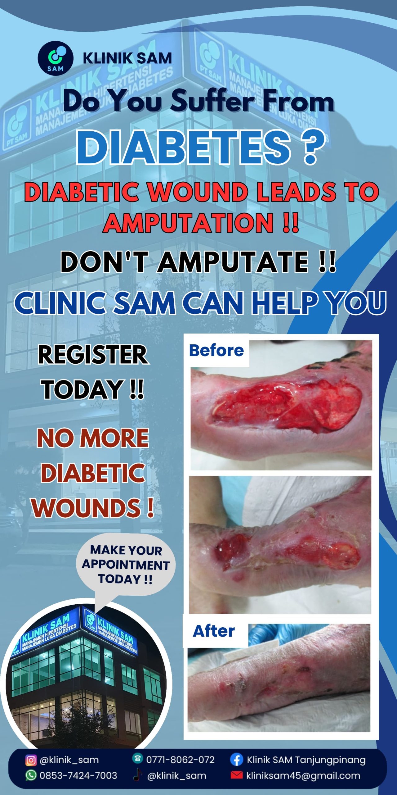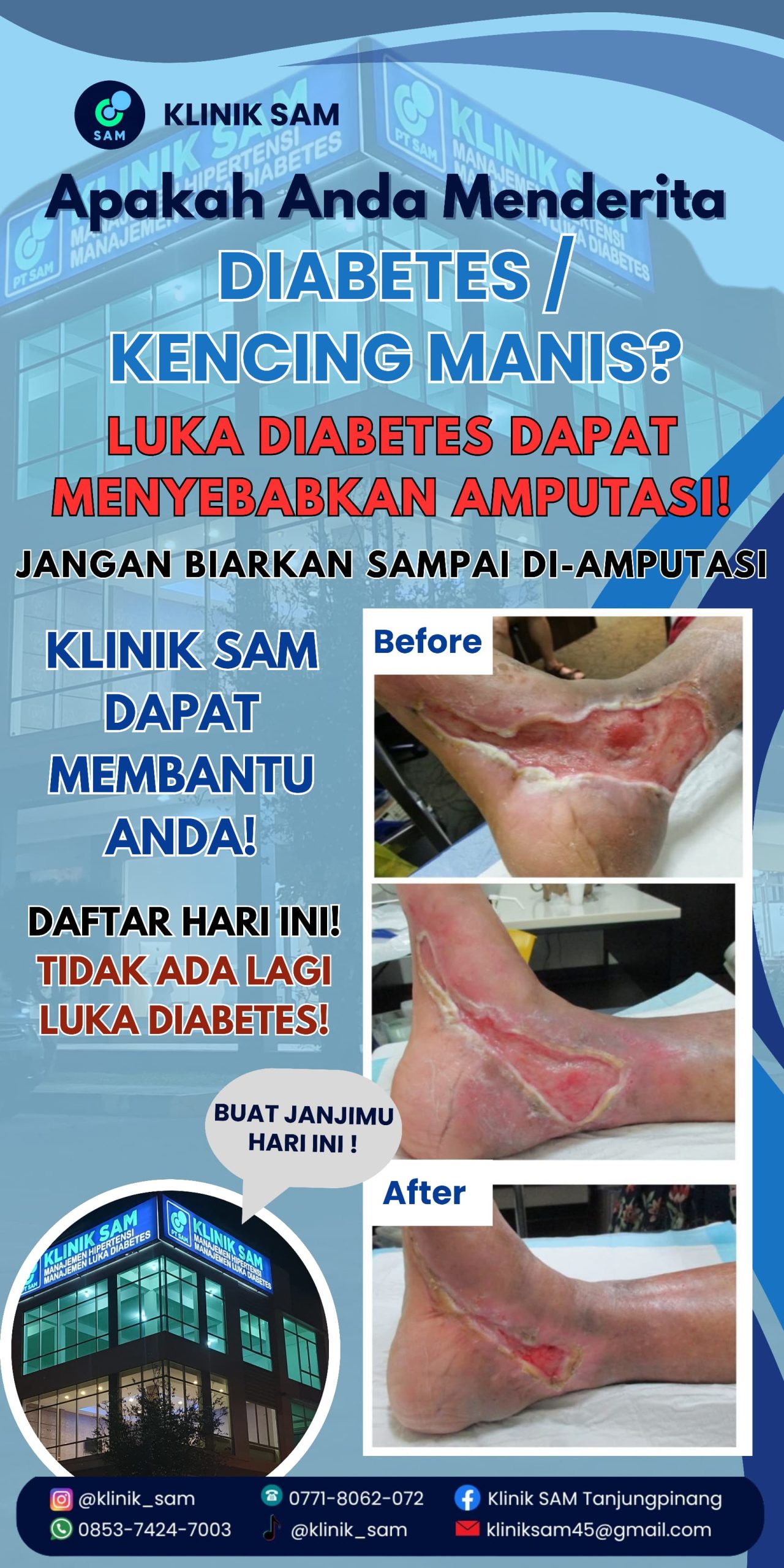 Klinik SAM hadir sebagai solusi untuk para penderita diabetes. Manajemen Luka Diabetes ini bertujuan untuk menyembuhkan luka diabetes dengan cara memperbaiki jaringan agar mencegah pilihan terakhir amputasi